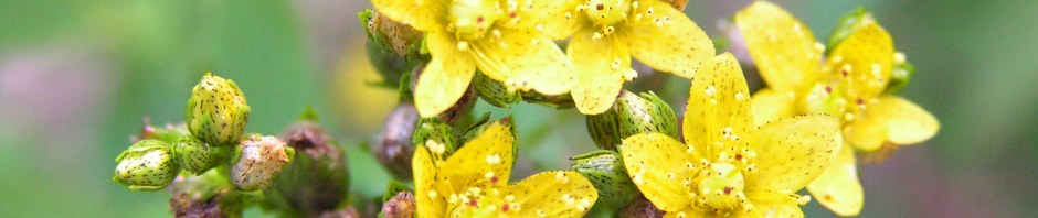 The week spanning Father’s Day (June 17, 2001) to St. John’s Day (June 24, 2001), stresses a saintly plant, St. John’s-wort, Hypericum perforatum, and its relatives St. Andrew’s Cross and St. Peter’s-wort, a real saintly combination. As best I can determine, Hypericum was not mentioned in the Bible, though St. John’s-wort does grow in the Holy Land now as a weed. And I have seen it there, cultivated as a medicinal. Poor Israel, with little forest and little fresh water, is better off with a sun-loving weed, like Hypericum perforatum, than a moist forest species like Hypericum punctatum.