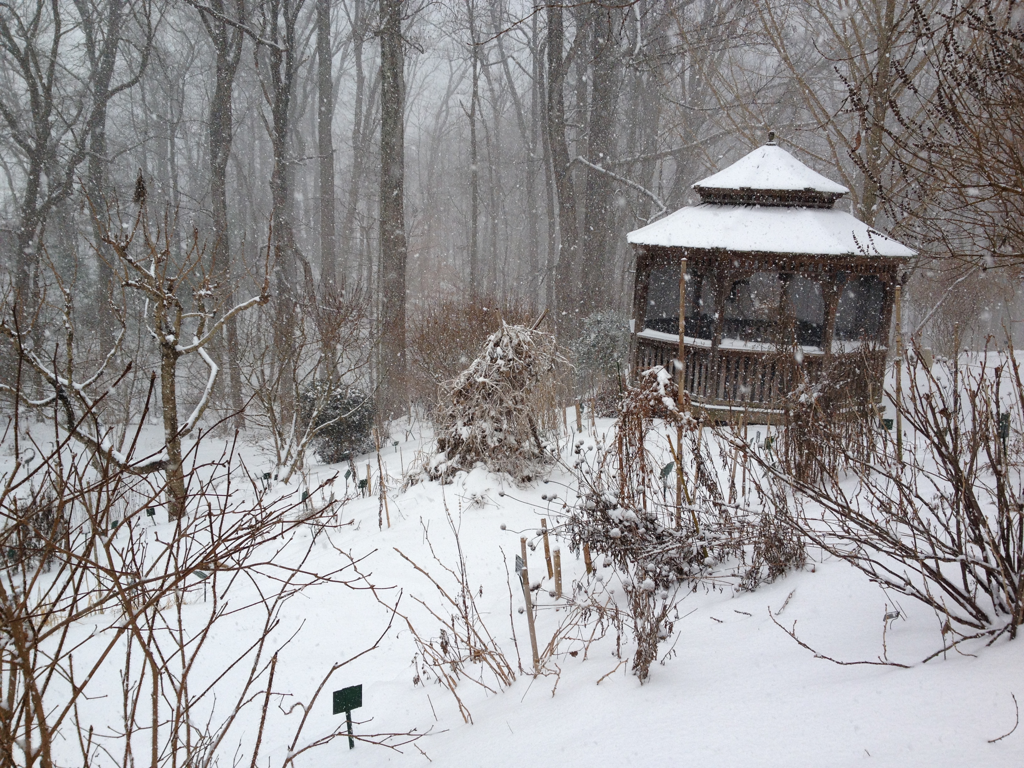 After many years of balmy winters and virtually no snow, the garden, along with the whole mid-Atlantic, finally got hit hard. The garden received not only repeated snowfalls but also a walloping dose of below normal temperatures off and on since the first of January.  It is not the insulating blanket of snow that has wreaked havoc with my sleep but rather nights like tonight that are scheduled to dip down to 1˚F.  Since I’ve been working at the garden, it’s never been this cold for such an extended time.