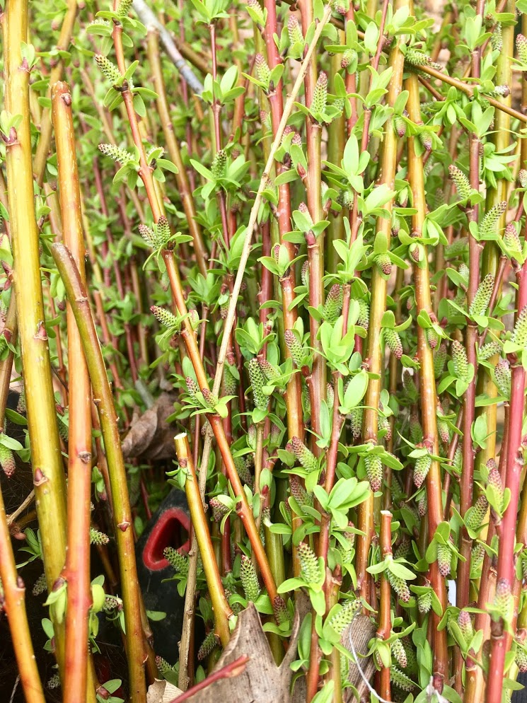 Dapper dappled willow pruning : Salix integra past branch clipping textiles to be woven into new basketry