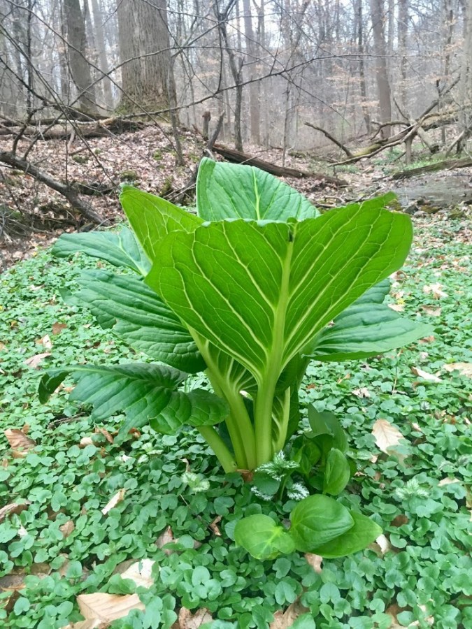 Lysichiton americanus : giant lone skunk cabbage by the woodland stream
