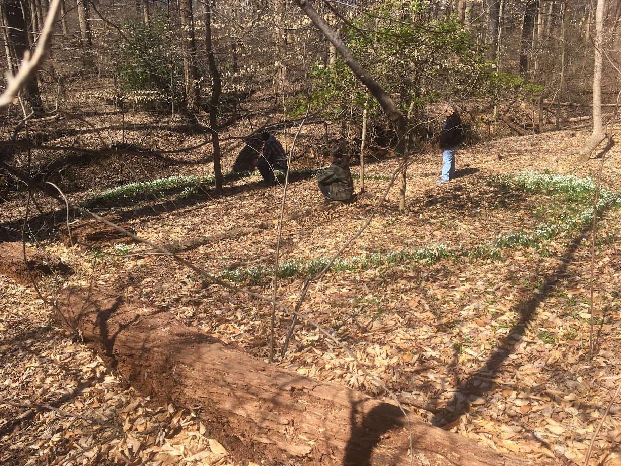 the full snow drop circle visited by Annie-Sophie’s family in quiet springtime contemplation