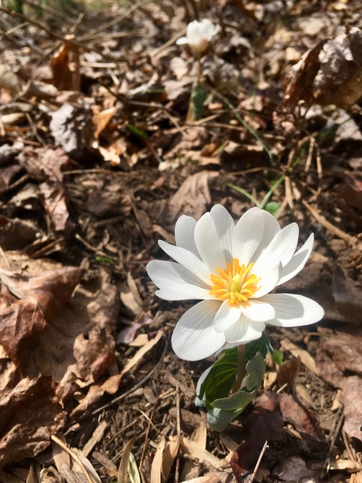 spring ephemeral Sanquinaria Canadensis : bloodroot has a sister bud behind<3