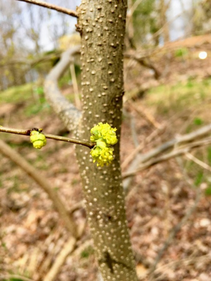 Lindera benzoin native woodland flower lites and bark : Northern spicebush