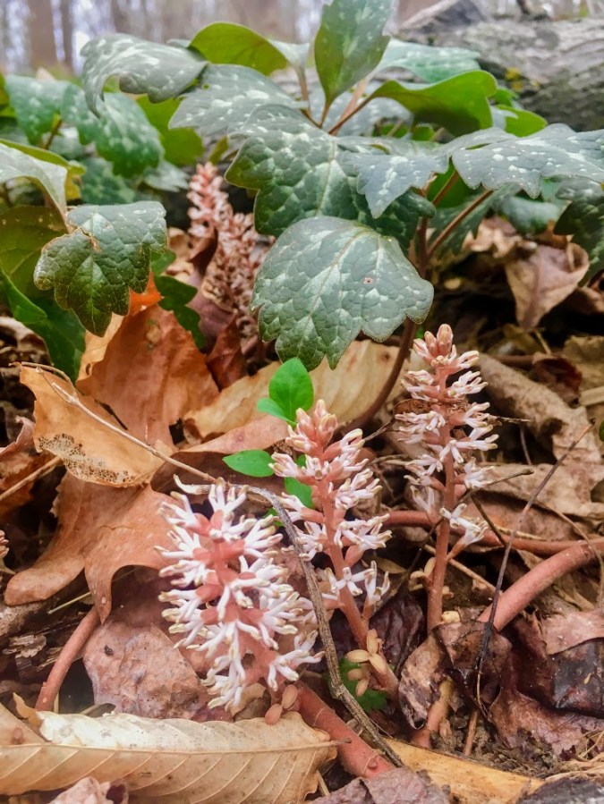 Mountain spurge : Dappling the forest soil as hidden gems, Pachysandra procumbens flowers : moutain spurge