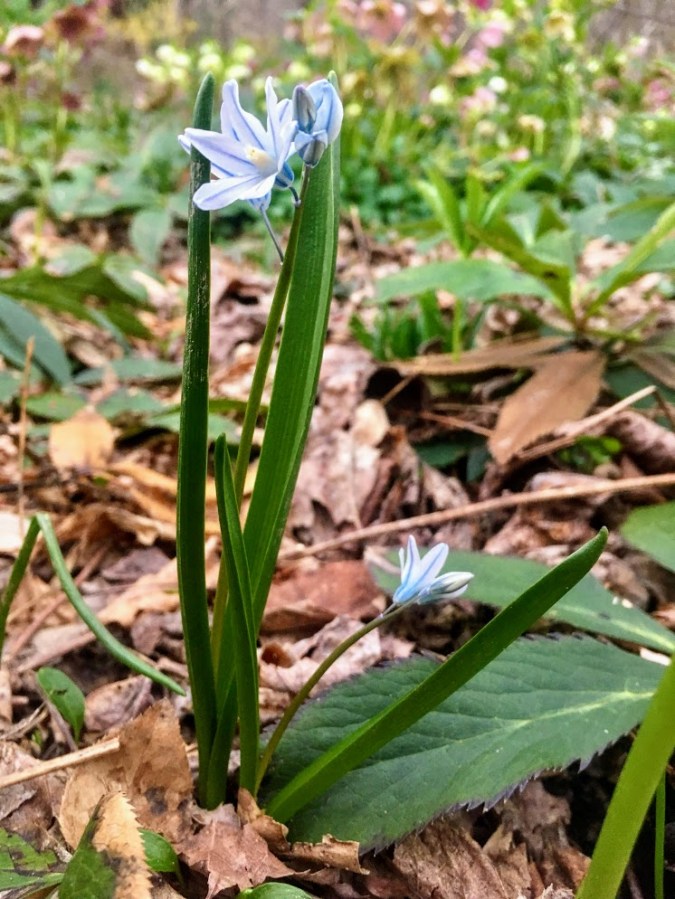 dainty woodland Puschkinia scilloides : striped squill, hiding in the forest underleaf as springtime gems…