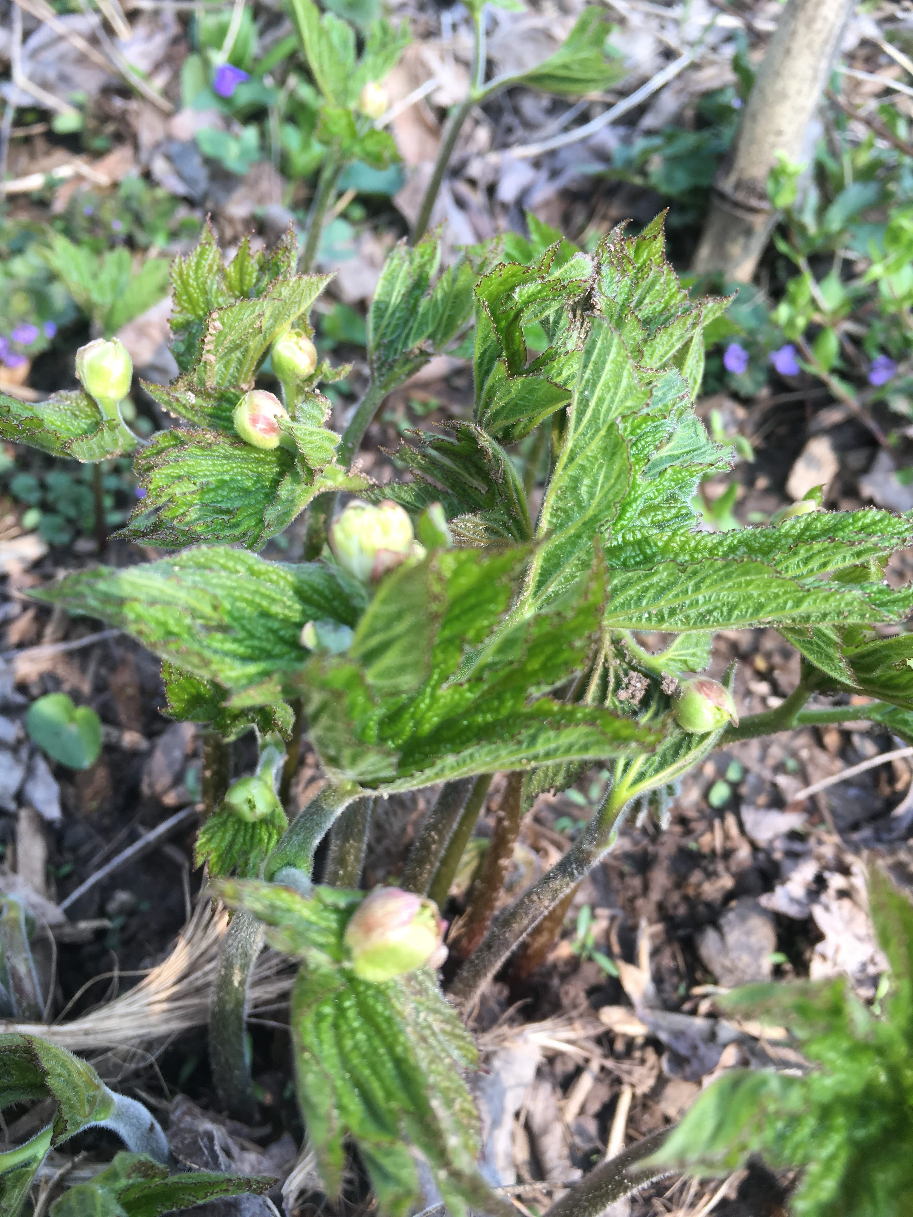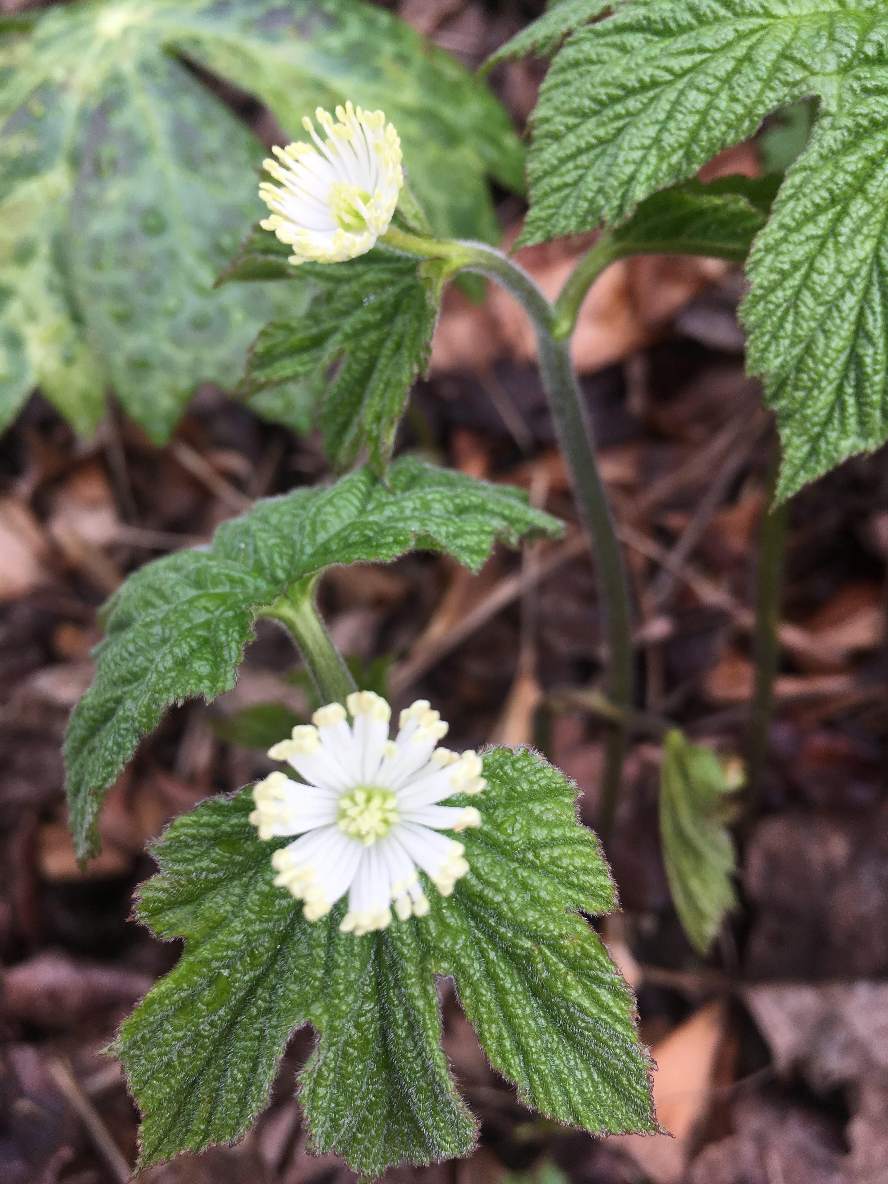 Hydrastis canadensis : goldenseal, unfurling & in bloom