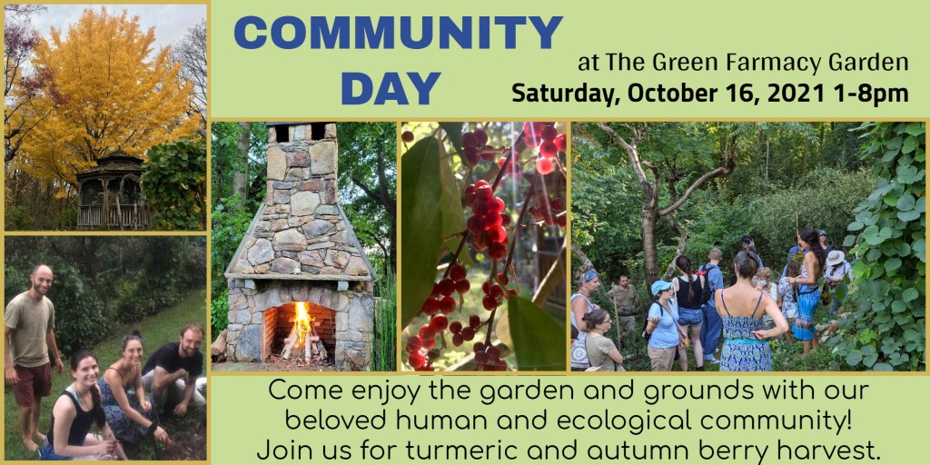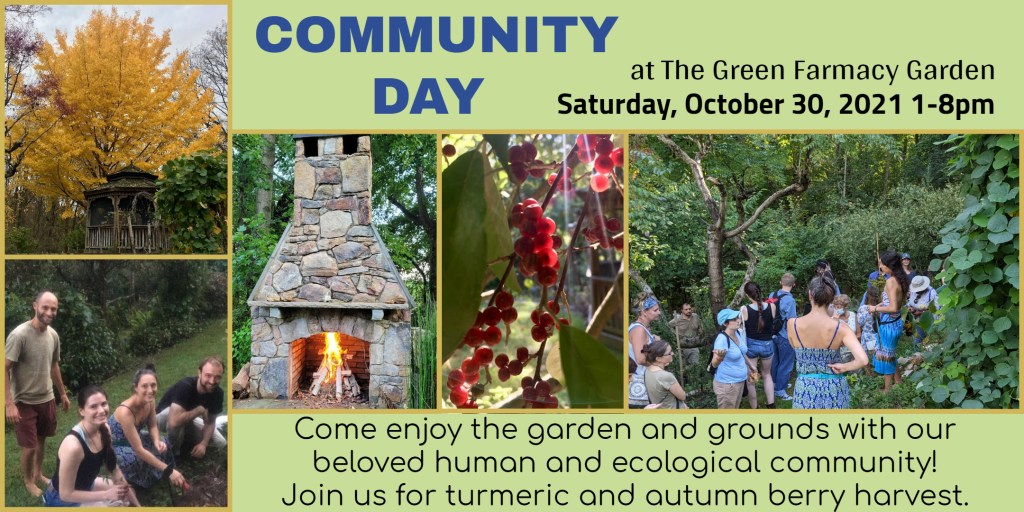 This month, we’re hosting another Community Day with tours, demos, and potluck; our first weekend Volunteer Day since June(!!); and back-to-back herbal magic workshops with our good friend, Maryland State Mead Champion Julie Biedrzycki. Check out all the offerings below (titles and pics link to events) and come celebrate the turn of the season with us!