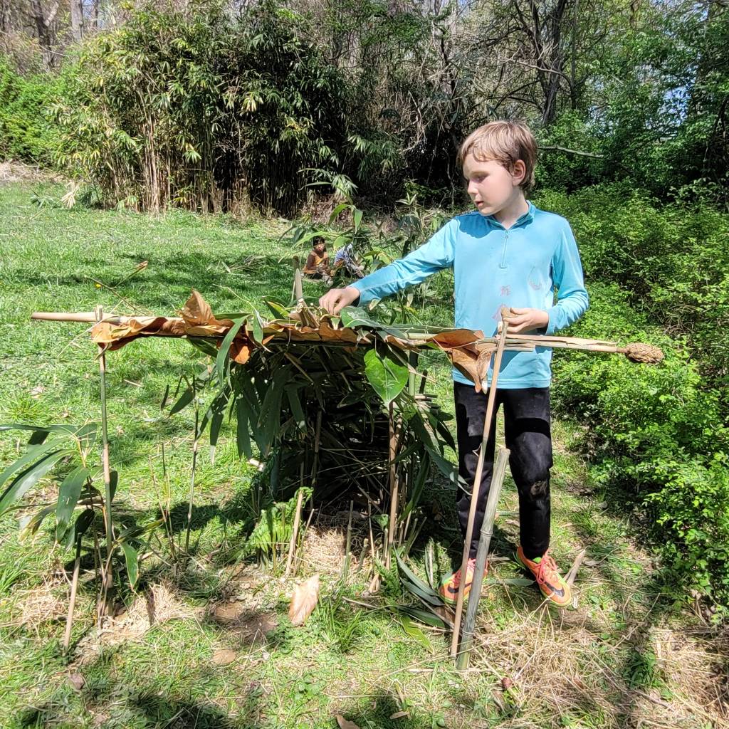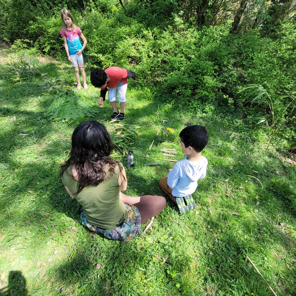 Fairy and Gnome house construction was a highlight of the day! Friends of the Garden Julie and Zosia Biedrzycki guided families to source abundant, regenerative, and/ or dead materials from the site to craft and decorate their structures.