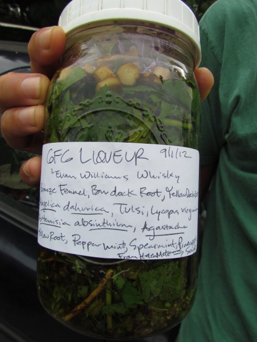 We, at the Green Farmacy Garden, have gotten onto the bitters’ bandwagon. This past autumn, in anticipation of a class focusing on this subject, we made a brew of “Dr. Duke’s Bitters” to serve to the students and to take before our noontime soup. The brew’s ingredients include goldenseal root, yellowroot, dandelion root, chicory root, wormwood leaf, dandelion leaf, hop strobiles, boneset leaf, feverfew leaf, skullcap leaf, fennel seed, anise hyssop leaf, sweet cicely root and brandy. Come by the garden, visit these bitter herbs, and take a sip of this concoction. We guarantee this is a very easy bitter to swallow.