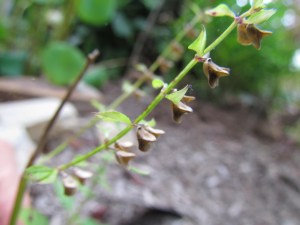 Some folklore I believe; some I don’t. BUR recounts that this plant is reported to kill rattlesnakes when held to their noses. (BUR) Organic Gardening quoted famed pharmacognocist Norman Farnsworth (January 1990, p. 54), “Thymol has been found to loosen phlegm in the respiratory tract… It also has been shown to act as an antitussive which will relieve coughing.” I think it will be just as promising for backache. If I had a backache and a lot of frost mint, I’d drink frost mint tea and add some to my bath water. The oil is said to be a stimulant aromatic. Because of its thymol, it is probably a good antiseptic . But don’t overdo the thymol, it can irritate mucous membranes. Even GRAS herbs should be used in moderation. It seems that thymol and carvacrol often run in tandem. I suspect that within a species, if one is high, the other is compensatorily low. (HOS) This herb is a good American answer to oregano. Today as I write this, Dec. 28, 2007, there were two tentlike veils of ice surrounding the lower inch or so of the stems to which the thyme-scented leaves are still attached. And the leaves still smell strongly of oregano and some were crushed up with a boring squash dish that needed a culinary cunila uplift.