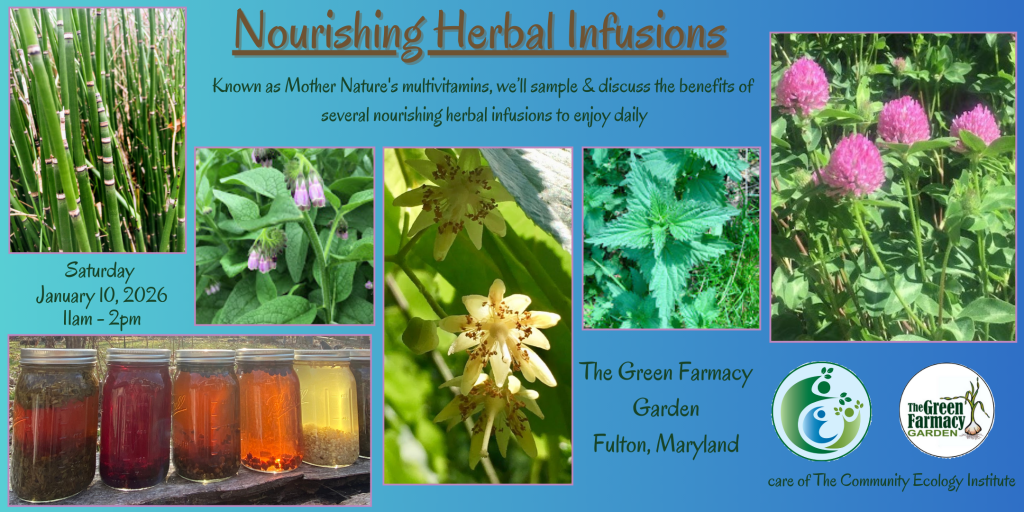 Known as Mother Nature’s multivitamins, we’ll sample & discuss the benefits of different nourishing herbal infusions to enjoy daily
